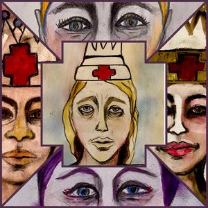 The portraits of healthcare workers, both deceased and living, were placed in a grid to symbolize the invisible strength that binds us. In unity we create a more powerful force for the healing of humanity. Each of these workers have been “coronated" with a crown modeled after the old-style nursing caps I wore 35 years ago. The crown symbolizes victory over the corona virus, a nod towards corona’s English translation and a form of well-deserved recognition for the courage and sacrifice it takes to be a healthcare worker on the front lines of a global pandemic.