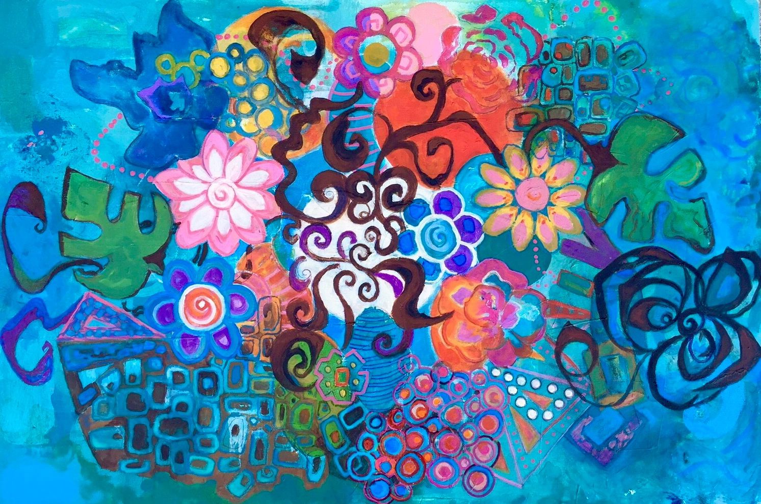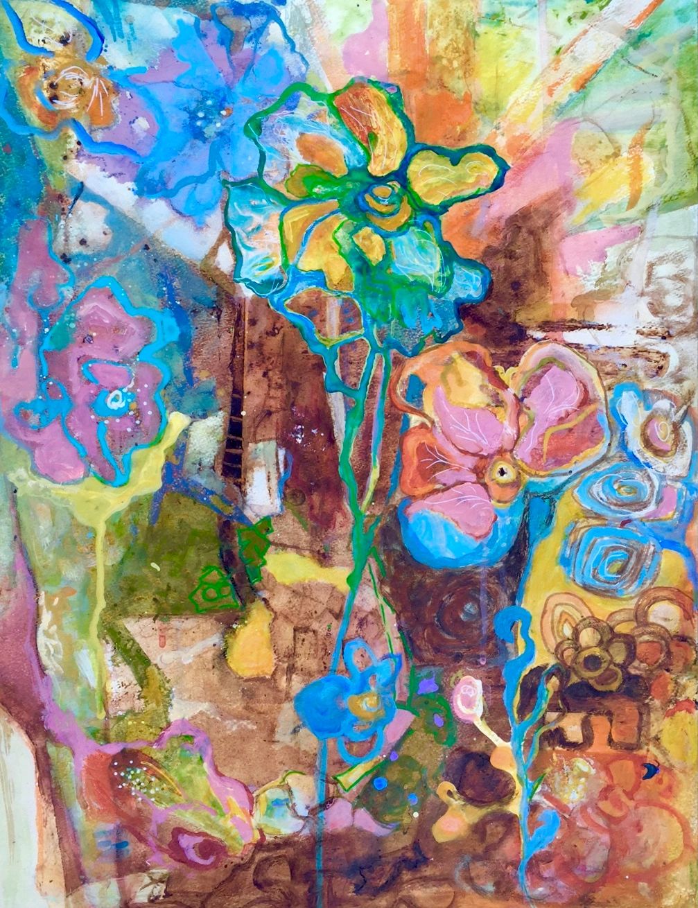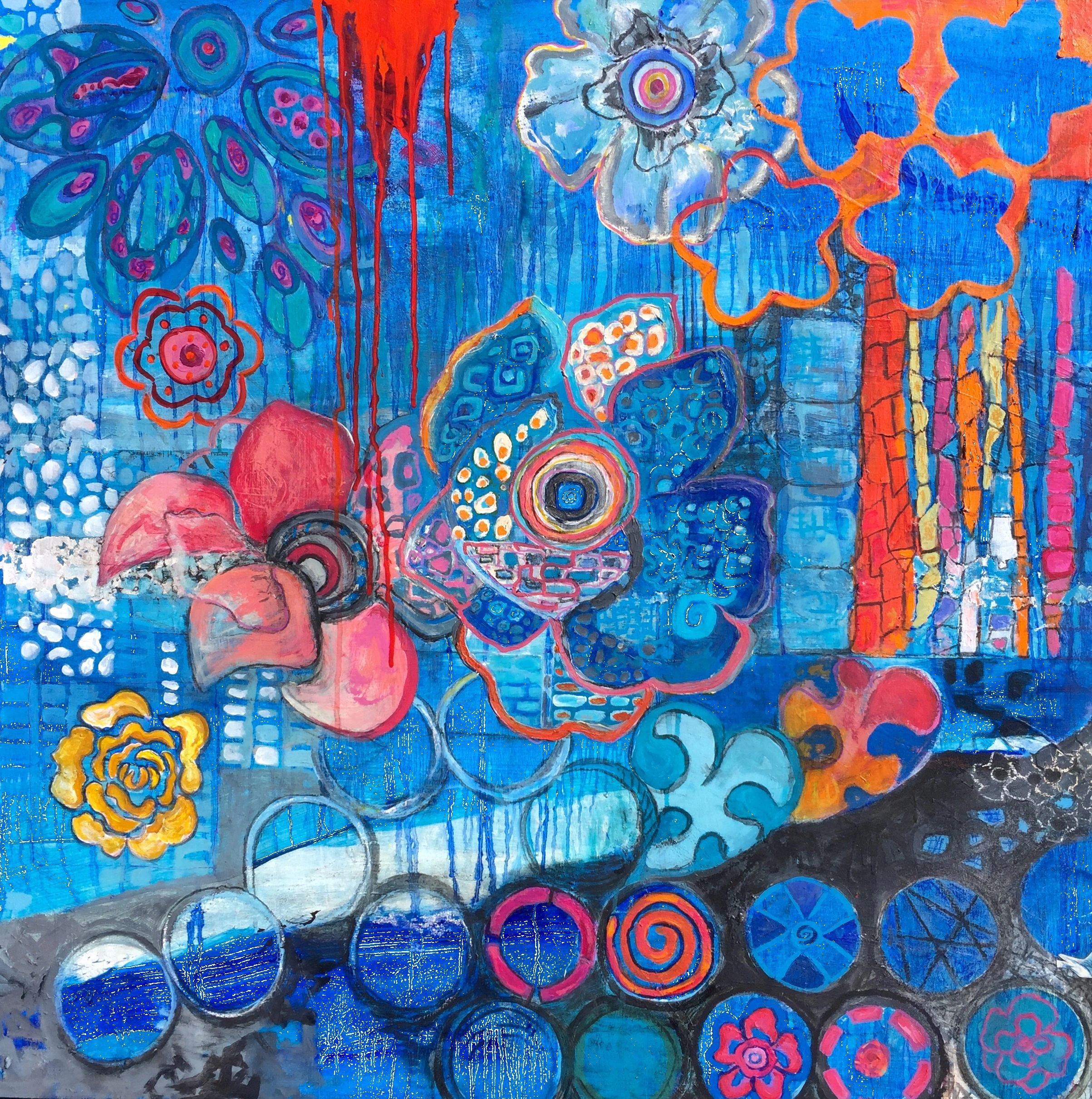 I found myself resolving each painting similarly to how I move through the complexities of life. I step back to gain a broader perspective and wait for an intuitive thought or idea. I pause to gain clarity and perspective as I lean into the next layer of resolution. Each painting tells a story of life's blossoming transformations. These personal paths of transformation take place through contemplation followed by willingness to break out of old patterns while creating restful places and exciting new connections. Much like the artists of Vienna, I used the simplest elements of design, color and nature to create and authentic and stylistic interpretation of my beautiful but complex life in Los Angeles.