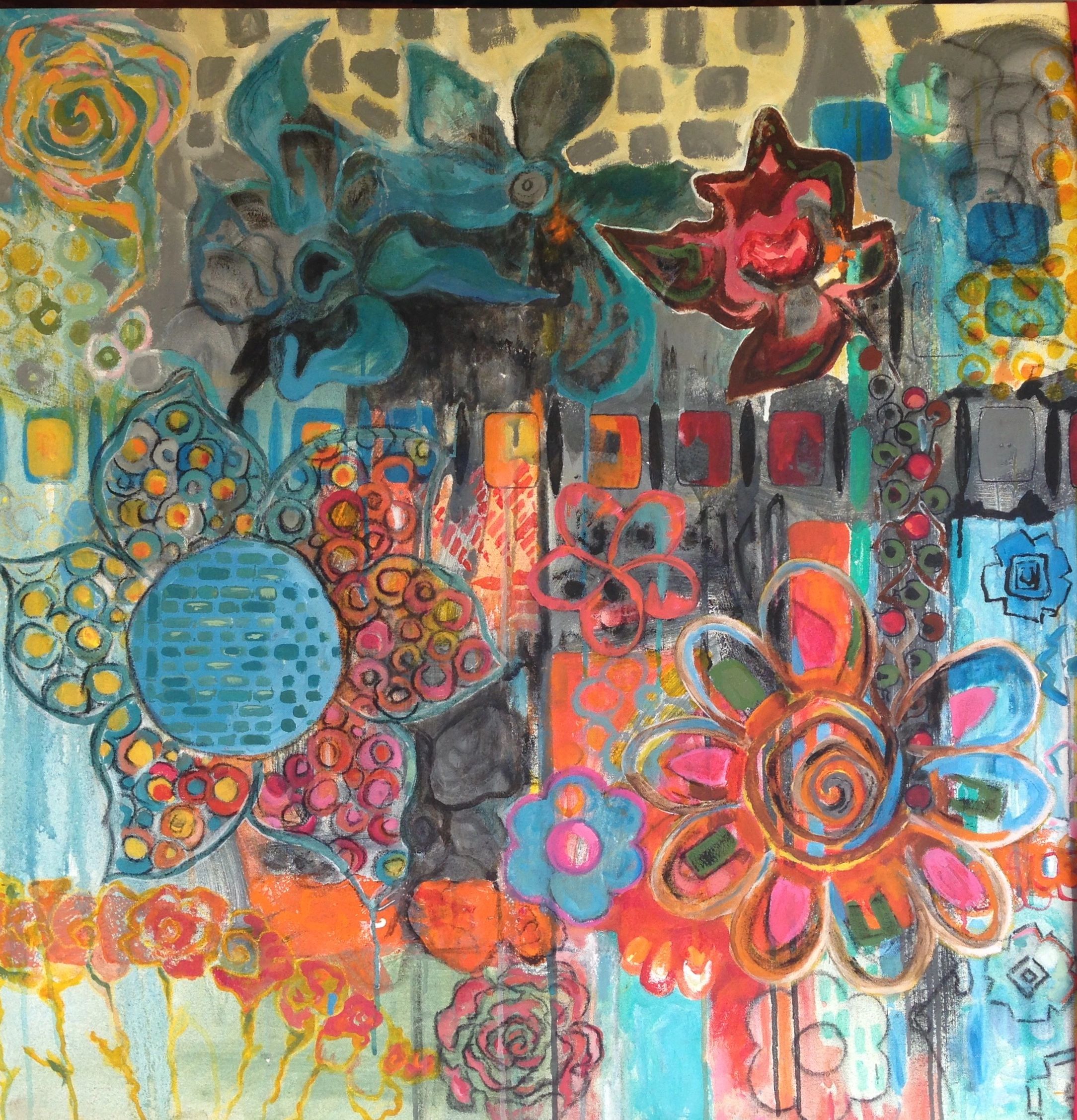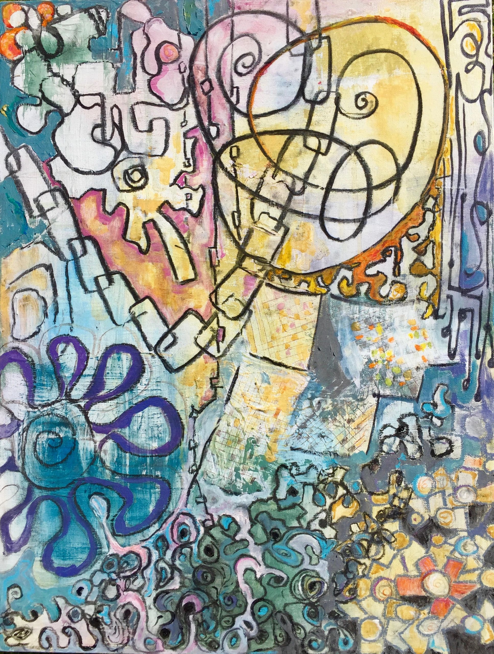 Acrylic, charcoal, and collage on canvas (36"x36")